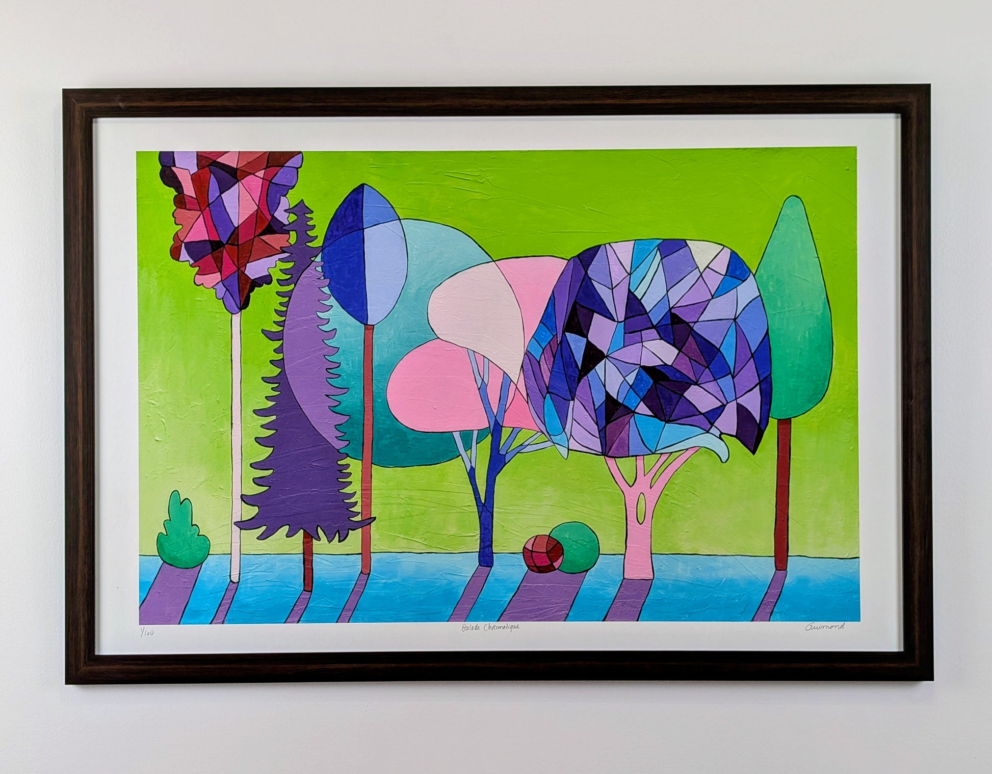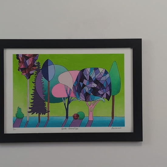 Con Paseo cromático, Guimond nos sumerge en una naturaleza revisada, donde las formas y los colores se entrelazan para crear una sinfonía visual moderna y moderna. Un trabajo que inspira serenidad y asombro, perfecto para iluminar un espacio de su vibrante presencia.